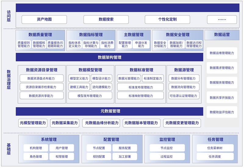 • 功能可扩展:基于成熟的数据治理框架设计,各模块业务充分集成;通过Web客户端架构的可配置、功能的模块化实现了系统的可扩展。
